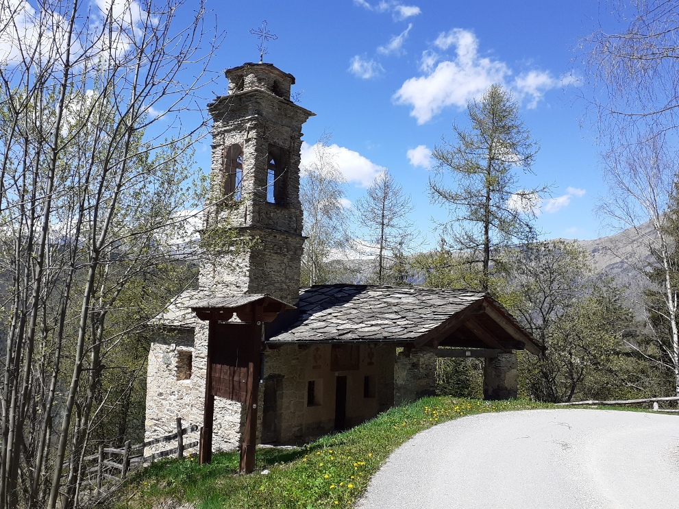 Sempre attraverso un agevole sentiero si raggiungerà la carrozzabile asfaltata nei pressi del cimitero, proseguendo per la Cappella trecentesca di San Sebastiano con gli affreschi interni di Giovanni Baleison e, in facciata, la rappresentazione di San Sebastiano e San Rocco. Si ritornerà a Borgata Chiesa per un tratto di sentiero immerso nel bosco.